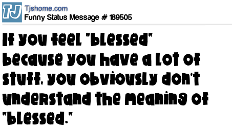 X says If you feel "blessed" because you have a lot of stuff, you obviously don't understand the meaning of "blessed."