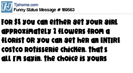 X says For $5 you can either get your girl approximately 2 flowers from a florist OR you can get her an ENTIRE costco rotisserie chicken. that’s all I'm sayin. the choice is yours