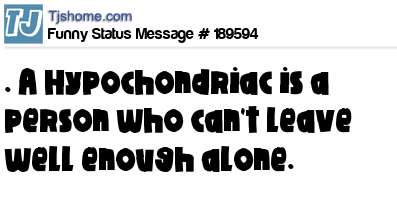 X is . A Hypochondriac is a person who can't leave well enough alone.