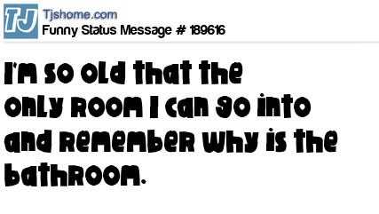 X is I'm so old that the only room I can go into and remember why is the bathroom.
