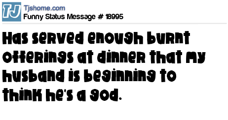 X has served enough burnt offerings at dinner that my husband is beginning to think he's a god.