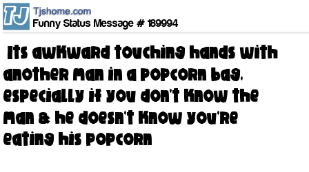 X says Its awkward touching hands with another man in a popcorn bag, especially if you don't know the man & he doesn't know you're eating his popcorn