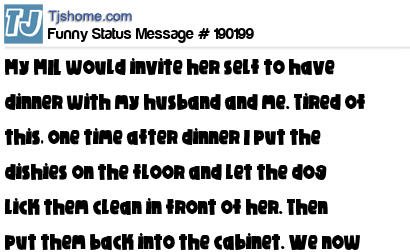 X is My MIL would invite her self to have dinner with my husband and me. Tired of this, one time after dinner I put the dishies on the floor and let the dog lick them clean in front of her. Then put them back into the cabinet. We now have MIL free dinners.