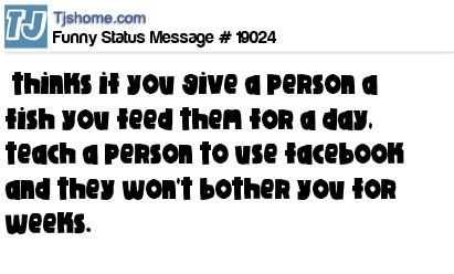 - # 7901 thinks if you give a person a fish you feed them for a day, teach a person to use facebook and they won't bother you for weeks.