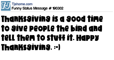 X is Thanksgiving is a good time to give people the bird and tell them to stuff it. Happy Thanksgiving. :-)