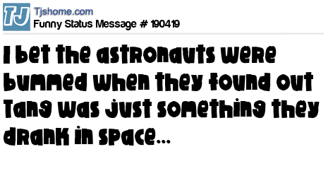 X  I bet the astronauts were bummed when they found out Tang was just something they drank in space...