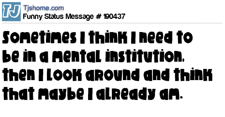X says Sometimes I think I need to be in a mental institution, then I look around and think that maybe I already am.