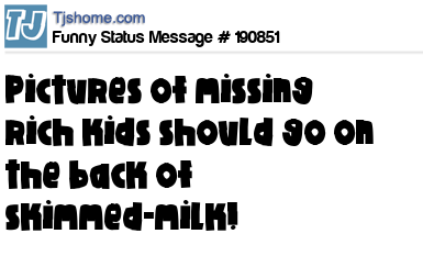 - # 110645 Pictures of rich missing kids should go on the back of 1% milk.
