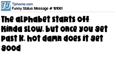 X says The alphabet starts off kinda slow, but once you get past K, hot damn does it get good