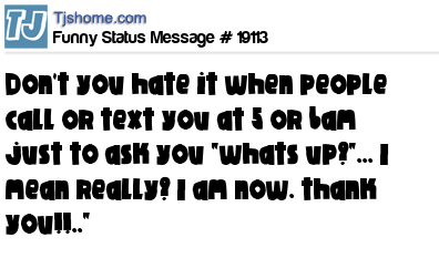 X is Don't you hate it when people call or text you at 5 or 6am just to ask you "whats up?"... I mean really? I am now. thank you!!.."