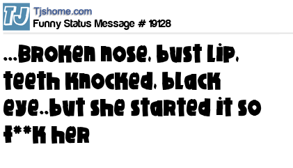 X says ...Broken nose, bust lip, teeth knocked, black eye..but she started it so f**k her
