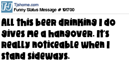 X is All this beer drinking I do gives me a hangover. It's really noticeable when I stand sideways.