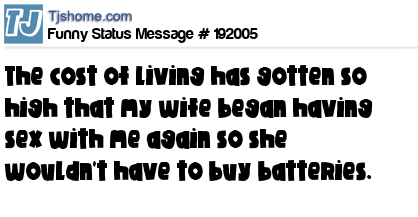 X says The cost of living has gotten so high that my wife began having sex with me again so she wouldn't have to buy batteries.