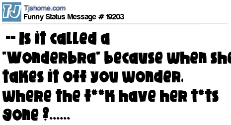 - # 31686 The Wonderbra has truth in advertising. She takes it off, I wonder where the boobs went.