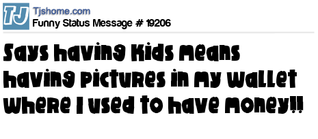 - # 130604 I always carry a picture of my wife and kids in my wallet. It reminds me of why there is no f*cking money in there.
