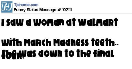 - # 184289 I saw a woman at Walmart with March Madness teeth.. She was down to the final four.
