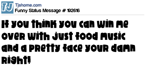 X is If you think you can win me over with just food music and a pretty face your damn right!