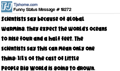 X Scientists say because of global warming, they expect the world's oceans to rise four and a half feet. The scientists say this can mean only one thing: 3/5's of the cast of Little People Big World is going to drown.