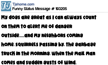 - # 159536 Dogs are great. You can count on them to alert you of danger...Also, children passing by, squirrels and gusts of wind they don't like.