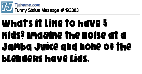 X says What's it like to have 5 kids? Imagine the noise at a Jamba Juice and none of the blenders have lids.