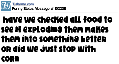 - # 193666 have we checked all food to see if exploding them makes them into something better or did we just stop with corn