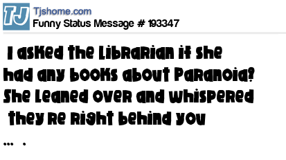 X says  I asked the Librarian if she had any books about Paranoia? She leaned over and whispered “they’re right behind you ... ”.