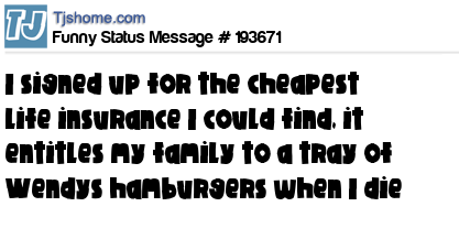 X says i signed up for the cheapest life insurance I could find, it entitles my family to a tray of Wendys hamburgers when I die