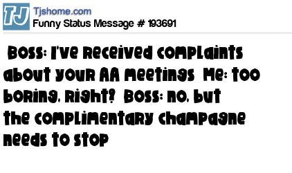 X says Boss: I've received complaints about your AA meetings Me: too boring, right? Boss: no, but the complimentary champagne needs to stop