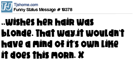 X ..wishes her hair was blonde. That way,it wouldn't have a mind of it's own like it does this morn. X