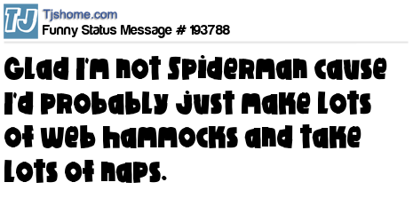 X says Glad I'm not Spiderman cause I'd probably just make lots of web hammocks and take lots of naps.