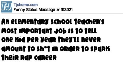 X says An elementary school teacher's most important job is to tell one kid per year they'll never amount to sh*t in order to spark their rap career
