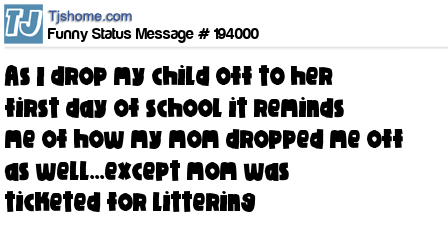 X says As I drop my child off to her first day of school it reminds me of how my mom dropped me off as well...except mom was ticketed for littering