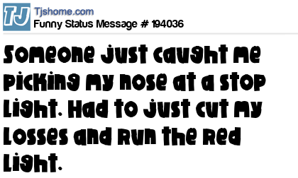 X says Someone just caught me picking my nose at a stop light. Had to just cut my losses and run the red light.