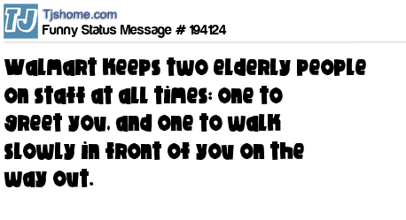 X says Walmart keeps two elderly people on staff at all times: one to greet you, and one to walk slowly in front of you on the way out.