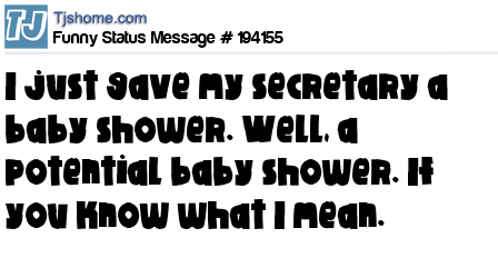 X says I just gave my secretary a baby shower. Well, a potential baby shower. If you know what I mean.
