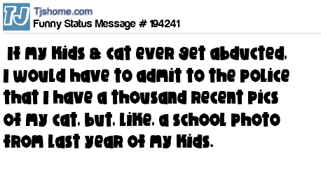 X says  If my kids & cat ever get abducted, I would have to admit to the police that I have a thousand recent pics of my cat, but, like, a school photo from last year of my kids.