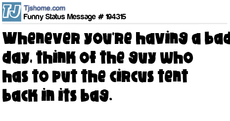 X says Whenever you're having a bad day, think of the guy who has to put the circus tent back in its bag.