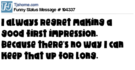 X I always regret making a good first impression. Because there's no way I can keep that up for long.