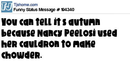 X says You can tell it’s autumn because Nancy Peelosi used her cauldron to make chowder.