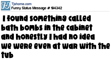 X says I found something called bath bombs in the cabinet and honestly I had no idea we were even at war with the tub