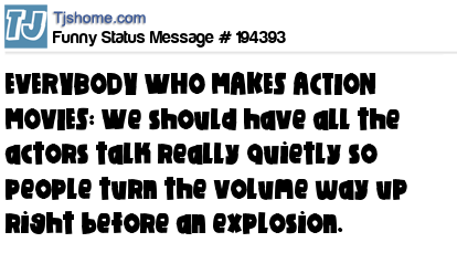 X says EVERYBODY WHO MAKES ACTION MOVIES: We should have all the actors talk really quietly so people turn the volume way up right before an explosion.