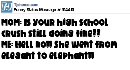 X says MOM: Is your high school crush still doing fine?? ME: Hell no!! She went from elegant to elephant!!