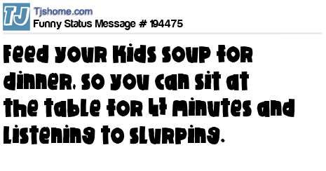 X says Feed your kids soup for dinner, so you can sit at the table for 47 minutes and listening to slurping.