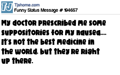 X says My doctor prescribed me some suppositories for my nausea.... It's not the best medicine in the world, but they’re right up there.