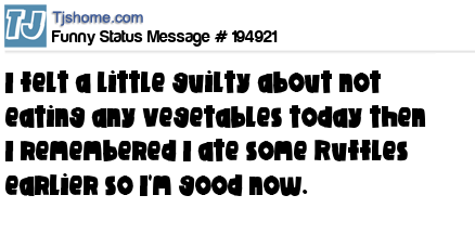 X  I felt a little guilty about not eating any vegetables today then I remembered I ate some Ruffles earlier so I'm good now.