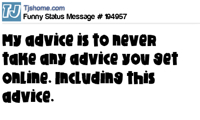 - # 64704 Sorry, but I don't take relationship advice from single people. That's like taking advice on how to jump hurdles from a dude with no legs.