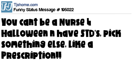 X says You cant be a Nurse 4 Halloween n have STD's, pick something else, like a Prescription!!