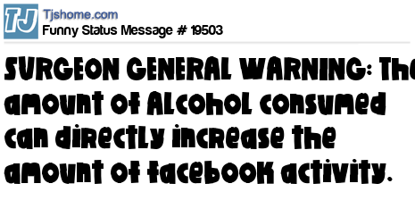 X SURGEON GENERAL WARNING: The amount of Alcohol consumed can directly increase the amount of facebook activity.