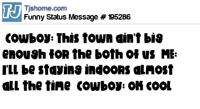 X says Cowboy: This town ain't big enough for the both of us ME: I'll be staying indoors almost all the time Cowboy: ok cool