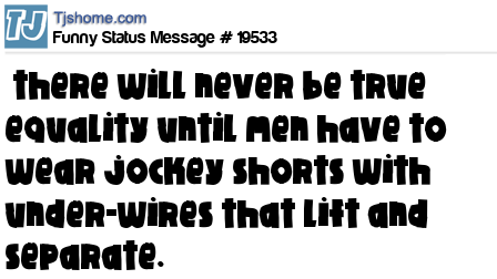 - # 45918 There will never be true equality until men have to wear jockey shorts with under-wires that lift and separate.